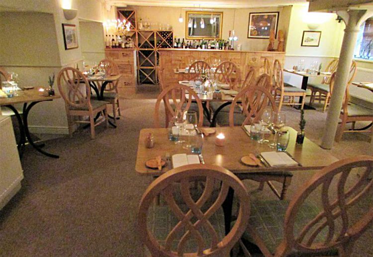 Typical starters (from a choice of around nine) include French onion soup and Creamy crayfish risotto with parmesan crisps whilst mains might include Sea bream with new potatoes, peas, samphire and lemon butter and Slow-cooked beef blade steak bourguignon style with onions, mushrooms and bacon, flavoured with thyme. Dessert could be a Baked rice pudding with poached early rhubarb or Chocolate and almond cake with after eights ice cream and chocolate sauce. And the food is ably complemented by a small but well-thought-out wine list encompassing half bottles, sparklers, dessert wines, whiskies and brandies.