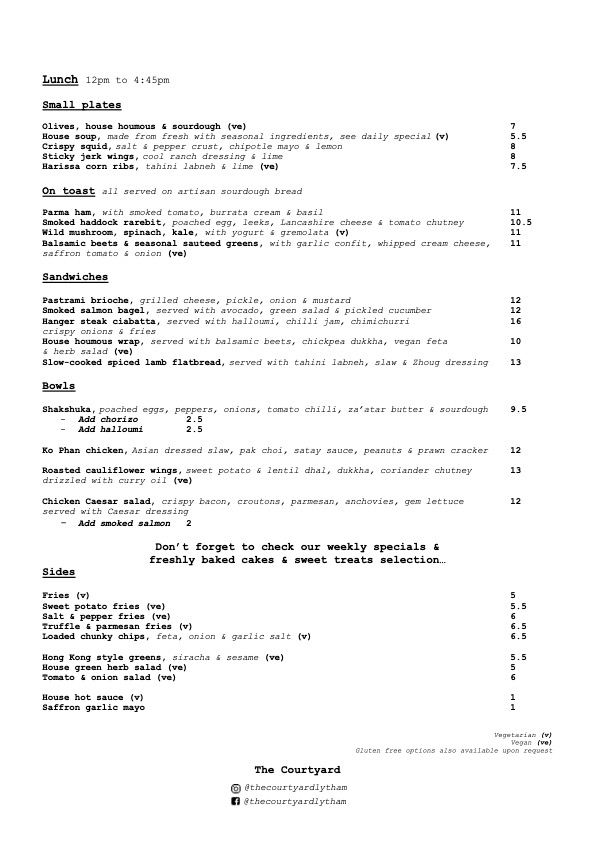 Housed in a building steeped in history a block back from Lytham Green, The Courtyard is a stylish café with its own heated and covered walled garden. It’s open seven days a week for breakfast, lunch and afternoon tea and for dinner too until 8.30pm on Thursdays, Fridays and Saturdays. It’s also fully licensed so you can drop in any time for a cheeky glass of wine or fizz. There’s a great breakfast selection catering to carnivores and vegetarians alike and lunch includes small plates, sandwiches, toasts and bowls. Evening choices might range from Steak Frites and Roasted Stone Bass to Cauliflower Chickpea Curry and Pickled Shiitake Mushroom Stir Fry with weekly specials also available. The Courtyard is also a great space for a private party and can cater for functions for up to 50 people.