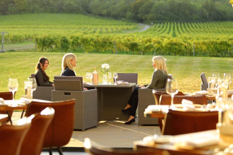 Denbies Wine Estate is located in Dorking, Surrey in the heart of Surrey Hills wine country. It offers a range of on-site facilities including indoor and outdoor tours, wine tastings, an art gallery, shopping, the Surrey Hills brewery, three restaurants and a new 17-bedroom hotel. The Hatch on the Lawn, in line with current government guidelines, offers outside dining in an all-weather marquee at the front of the winery building with views taking in the 265-acre vineyard along with Box Hill and the North Downs. The Lawn menu offers a range of hot and cold lunch dishes, afternoon teas and refreshments. All the food is sourced, when possible, from local suppliers in the south-east.