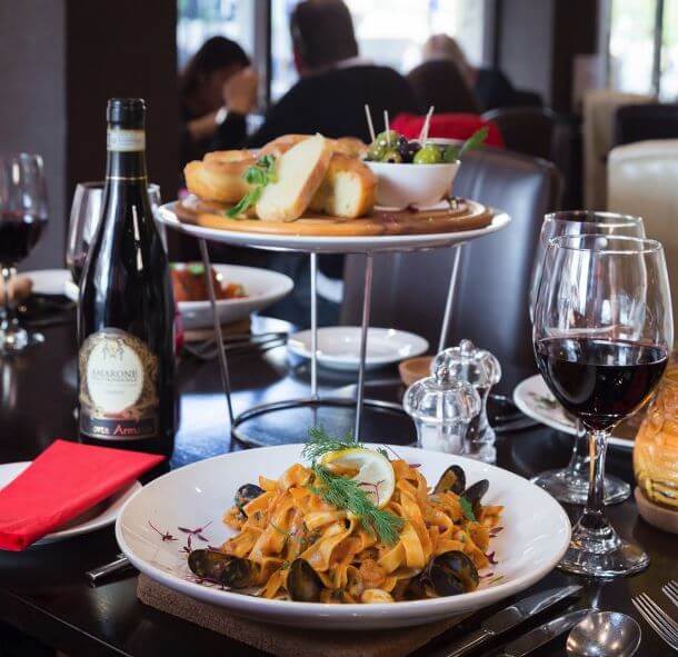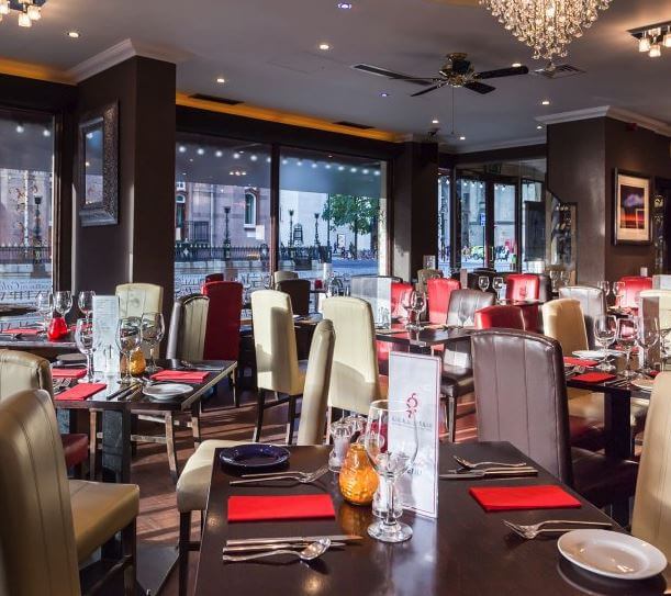 Centrally positioned on Lower Mosley Street, opposite the Midland Hotel and close to all the nightlife and cultural centres in Manchester, including the Bridgwater Hall and Manchester Central, Gio is the younger sister to the long-established Giorgios on Portland Street. The interior of the 65-cover restaurant blends contemporary furnishings and smartly laid tables with softer traditional Italian touches like the art on the walls and high shelves with wine and vinegar bottles, soft lighting and a stone floor. A popular choice for business lunches, a break from shopping and pre-theatre, Gios menu offers authentic Italian cuisine both a la carte and on specially priced set menus. Expect a good range of handmade Neapolitan-style pizzas, freshly cooked pastas and risottos as well as a large choice of favourites like the many steaks, veal and fresh fish dishes. Enjoy starters such as Gamberoni All Aglio, king prawns sauteed in garlic, white wine and lemon, mains like Calves liver lightly sauteed with caramalised onions and gravy, served with mashed potatoes, mushrooms and garden peas or Whole fresh sea bass, filleted and served on a bed of fresh julienne veg and classic desserts like their homemade Tiramisu. A well-chosen wine list mixes Italian classics with a selection from the New World. Larger parties are welcome and there are incentives for party organisers.