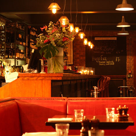 There’s a distinct French feel to this modern and spacious brasserie in the heart of Liverpool. Chef-patron Martin Renshaw has put his own stamp on the menu with some unashamedly Gallic-influenced dishes: Try Grilled scallops with pea puree and Bayonne ham or Merguez sausage and bean cassoulet as a starter along with mains such as Duck a l’orange with fondant potatoes and green beans or Rump of lamb served pink with sweet potato, ratatouille and jus. You’ll also find classic char-grilled steaks, Rock oysters and a decadent shellfish platter for two plus small sharing plates like Whitebait with aioli and Tapenade with crisp bread. Hanover Street is open every day for lunch, afternoon tea and dinner and as well as the main a la carte there’s a good-value two-and three-course set menu at lunchtimes. An impressive 50-bin wine list too, French-focused but with other Old and New World options and a decent by-the-glass selection. Hanover Street Social is listed in the Good Food Guide and the Michelin guide. Salt House Tapas and Salt House Bacaro are sister venues.