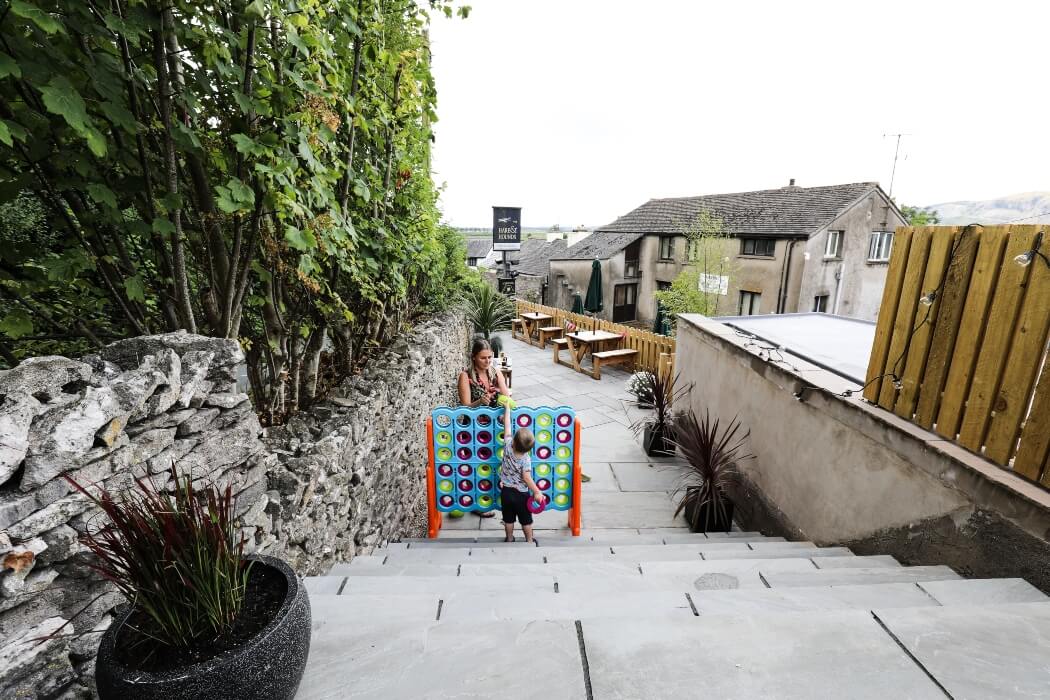 | Outside dining details | Newly redesigned terrace beer garden. Food available on first two levels, top level for views over the valley with a beer in hand and occasional BBQ's in Summer. |