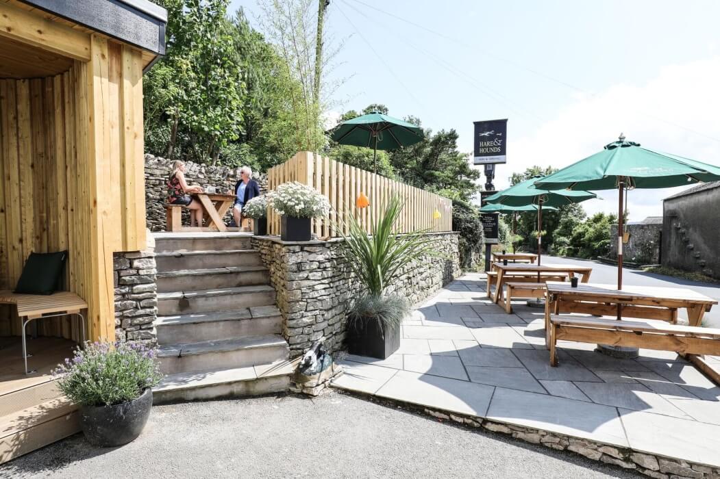 The Hare and Hounds is a beautiful 16th century coaching inn set in the pretty village of Levens in the Lyth Valley, near Kendal. It’s a proper village pub, full of character, with a restaurant serving delicious comfort food, five individually styled ensuite bedrooms, local cask ales on tap and a mean cocktail list. Head Chef Allan Kay has been part of the team since Ash and Becky Dewar bought the freehold in 2013 and his menu offers a choice of homemade burgers and classic thin-crust pizzas as well as mains like Chargrill ribeye steak, Pork and damson sausages with black pudding mash, Greek-style lamb stew and Pan-fried fillet of seabass. The main menu is available all day every day from 12 noon to 9pm and weekdays there’s also a lighter lunch menu with soups, sandwiches and sharing boards. You can choose where to eat too – in The Barn restaurant with its views down the valley, al fresco on the new terrace beer garden or cosied up by the fire in the pub. Pizzas, burgers and fish & chips are also available as takeaway. The Hare and Hounds is also a great base from which to explore this beautiful part of the worlds. Rooms are named after previous owners and landlords and all have dreamy beds, gleaming bathrooms, thick carpets and thoughtful touches like homemade brownies and fresh coffee.