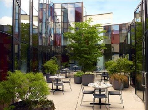 | Outside dining details | Outside the front of the hotel, on the terrace and internal courtyard with open roof. |