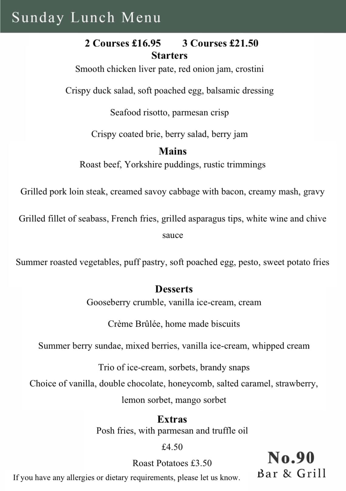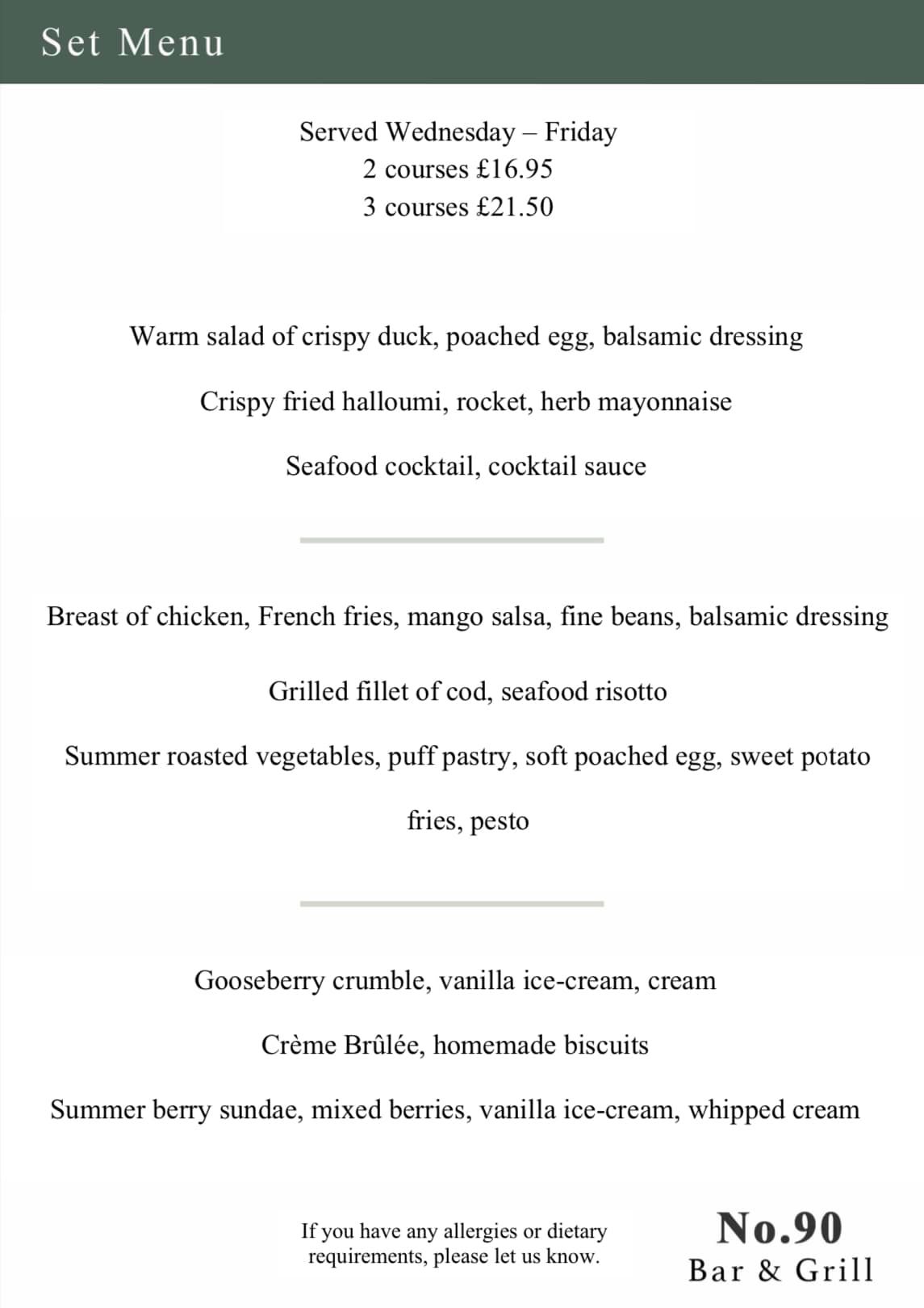 | Children's menu | Yes |