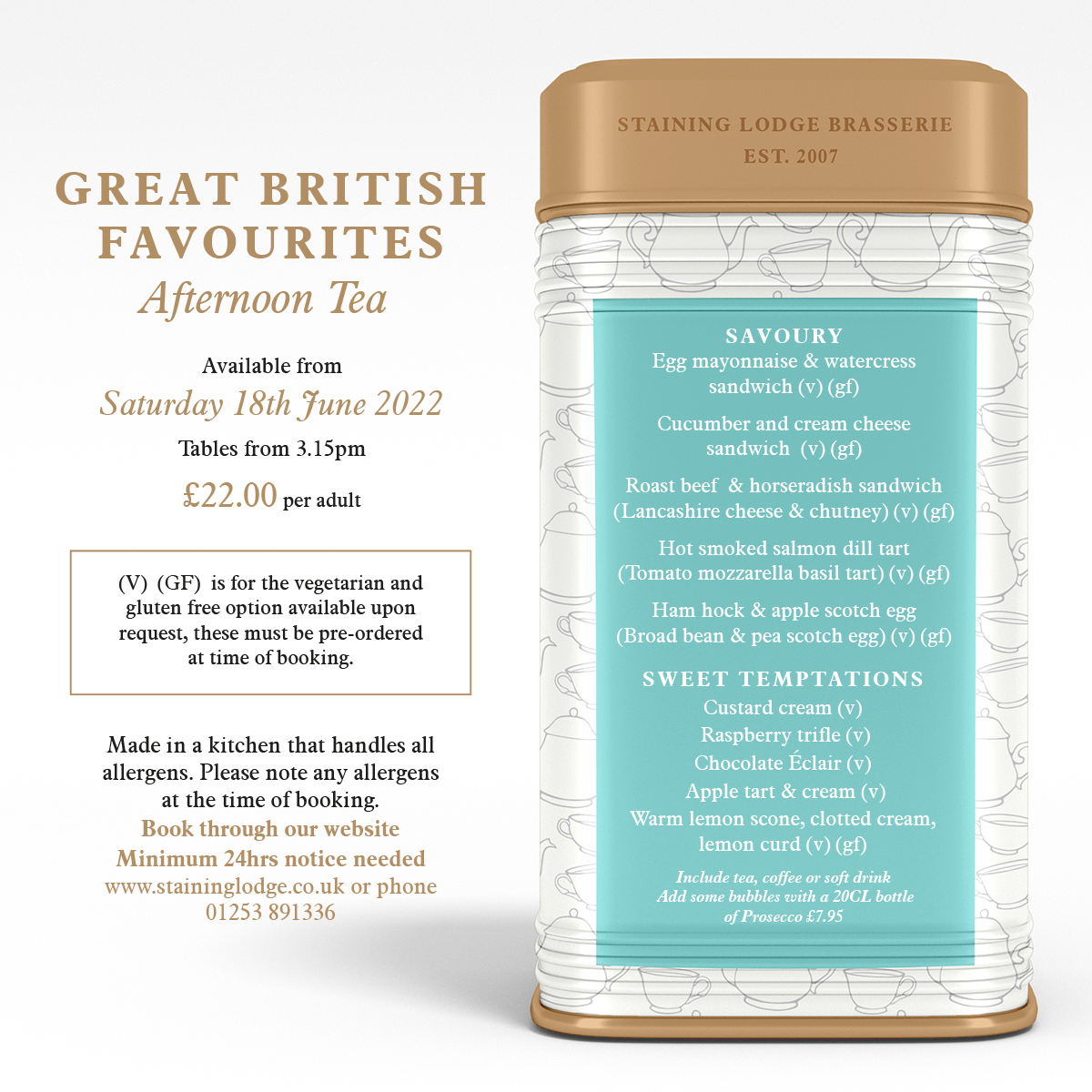 Set in 160 acres of Fylde countryside but just 10 minutes’ drive from Blackpool, Poulton and Lytham St Annes, Staining Lodge is an 18-hole golf course with a contemporary clubhouse and a standalone event venue – The Glass House – which is ideal for weddings and private functions. Breakfast, lunch and afternoon tea are served in the clubhouse which makes the most of its south-facing aspect with floor-to-ceiling windows, bi-fold doors and a large terrace overlooking the beautiful countryside. In winter, a real log fire keeps everybody cosy. Breakfast is served from 9am daily and lunchtime sees a varied menu including soups, sandwiches, salads, daily specials and Roast Beef every Sunday. Signature dishes include home-made pies, quiches and fishcakes. Afternoon tea is a speciality with seasonal and themed afternoon tea menus including a special Baby Shower afternoon tea; pre-booking is essential. The Glass House opened in April 2018 and has been designed as a blank canvas to accommodate any wedding or party theme. Tall windows wrap the room and look out over the Fylde countryside with bi-fold glass doors opening out onto a private landscaped garden. It can accommodate up to 150 guests seated and 200 party-style.