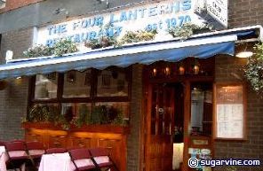 The 4 Lanterns is a traditional Greek restaurant named after a small bridge in Limassol in Cyprus -- 'Ta Tessera Phanaria' (the four lanterns). It's close to the Post Office Tower and Regents Park and has been family run since 1970. The restaurant seats 26 and there is a downstairs area with dance floor which is available for parties of up to 60 people (the plate smashing and belly dancing can be organised). Try the special mezedes -- a variety of Greek hors d'oeuvres followed by fish and meat specialities -- washed down with a good choice of Greek and Cypriot wines and beers. Host Peter is always on hand to offer advice.