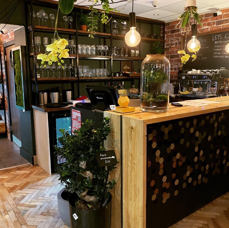 The Aycorn Shoppe is a South African Wine Bar set in and amongst a plant and décor design shop in Old Coulsdon. It brings a unique and quirky retail experience to the public, allowing guests to socialise within a tropical-themed environment. Open from 9am to 9pm, it‘s a café-cum-coffee shop in the morning, then serves lunch and a short dinner service from 6pm to 9pm. The bar serves only South African wines chosen by the owners and tweaked throughout the year. There is also a unique coffee blend roasted specially for the shop and light lunches and charcuterie boards are served in the afternoon and evening consisting of cheese, meats, veg options, mini pastries, dips and breads.