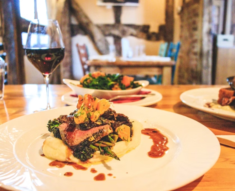 Set on the edge of the black-and-white village of Pembridge, The Cider Barn combines rustic charm with contemporary polish — think vaulted beams, natural textures and a relaxed but grown-up dining room. The kitchen leans into Herefordshire produce with confident, modern British dishes that shift with the seasons, backed by a thoughtful wine list and a welcoming, unfussy style of service. Beyond day-to-day dining, it has built a strong reputation as a venue for private events, with flexible spaces that lend themselves naturally to celebrations, functions and weddings — all delivered with the same attention to detail as the restaurant. Whether it’s a long lunch, an evening meal or a larger gathering, this is destination dining with a strong sense of place — quietly refined, but never precious.