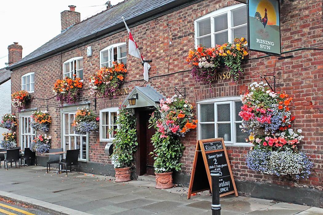 Once a famous saddlery as well as a pub, The Rising Sun in the centre of Tarporley has tended to the needs of hungry and thirsty visitors for centuries. It underwent a major makeover in 2017 thanks to a substantial investment from Robinsons Brewery, emerging with a contemporary country feel but retaining many original features. There are lots of nooks and crannies, incorporating the original fireplaces, and outside a great new courtyard garden. Food is served every day from 12 noon until 9pm (7pm Sundays) and the main menu offers plenty of choice combining pub classics with international dishes. Hot and cold sandwiches are also available until 5pm daily and there is a very popular Sunday Lunch menu. The Rising Sun has a great selection of drinks too with Robinsons real ales and specialist gins as well as craft beers, wines and soft drinks. It’s ideally located too for visiting nearby Delamere Forest, Oulton Park Racing Circuit and the Shire Horse Centre.