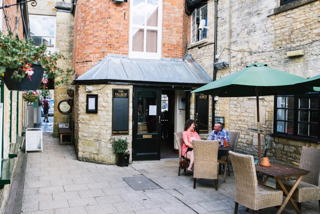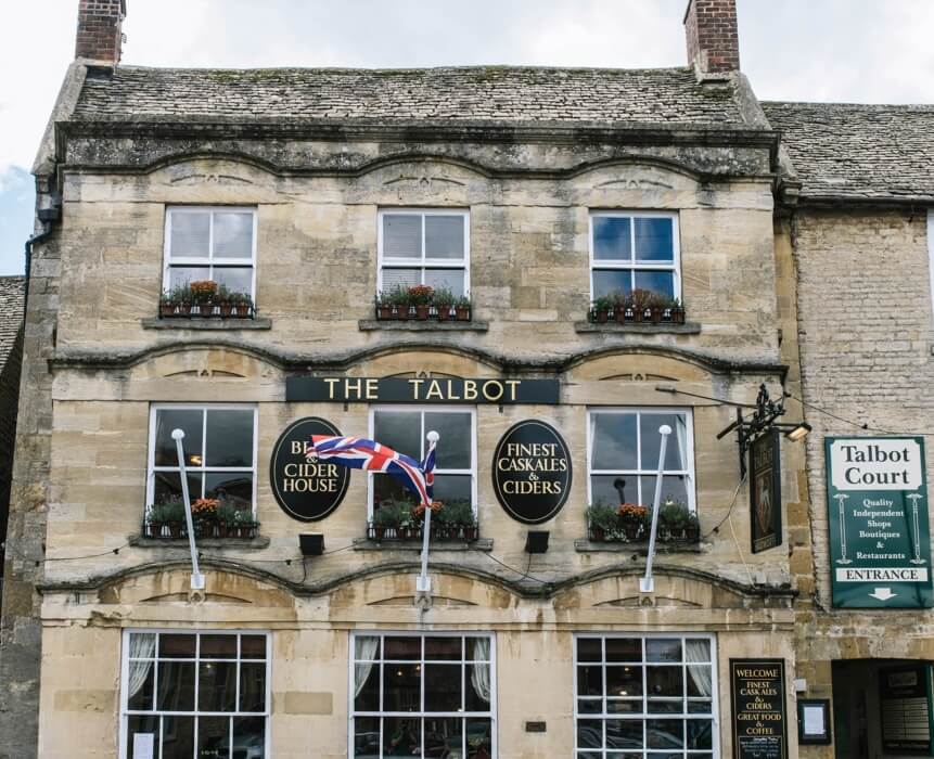For hundreds of years, The Talbot has been a feature of Stow-on-the-Wold’s picture-perfect market square. This historic old coaching inn dates back to the fifteenth century and spreads over two floors with a bar, restaurant, fireplace and small courtyard and an upstairs function room that can accommodate up to 30. It’s a Wadworth pub with a selection of five real ales on offer alongside a menu of homemade pub food which is available at lunch and dinner daily (and throughout the day at weekends). Popular dishes include the Breaded Brie with cranberry dip and mixed leaves to start and mains such as Pan-fried seabass served on a bed of saute potatoes, cherry tomatoes, red onion and wilted spinach with a balsamic glaze. Steaks, lasagne, pies and fish & chips feature too and there are plenty of special offers running throughout the week on the food and drink.