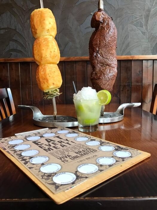 Situated on the ground floor of the Maldron Hotel in central Cardiff, less than 100 metres from the main train station and surrounded by all the shops, bars and restaurants, Viva Brazil is an authentic Churrascaria (BBQ). Once seated, your Brazilian-style dining experience begins as the troop of Passadors (Carvers) move from table to table, offering over fifteen select cuts of Beef, Lamb, Pork, Chicken and Sausages, all slow-roasted over a charcoal barbeque and expertly carved at the table. Accompaniments such as garlic mashed potatoes, polenta, fried banana and artisan cheese breads are served to your table for you to enjoy as well as a selection of seasonal salads and side orders available from the buffet station. The wine list has more than 100 bins to choose from but no Brazilian dining experience would be complete without a Caipirinha cocktail, the national drink of Brazil, mixed together using only Cachaca rum, freshly squeezed limes and sugar. With live music, samba dancers and a unique dining experience, Viva Brazil brings South America to Cardiff.
